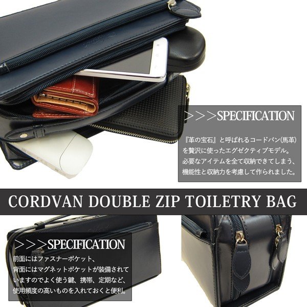 | 商品説明 | 「小さくて全てが収納できない」「小物がゴチャゴチャして取りだしにくい」 セカンドバッグにそんなお悩みをお持ちの方にこそ使っていただきたいこのバッグ。 セカンドバッグでありながら収納力を第一に考えられており、ダブルファスナーでメイン収納を分ける事で仕分けを容易にし、使い易さ、収納力を実現しました。 ・よく使う鍵、携帯等は外側のファスナーポケットやマグネットポケットに収納。 ・無くし易い小物は内側のファスナーポケット・オープンポケットに収納。 必要なアイテムを全て収納できてしまう、機能性と収納力を考慮して作られました。 『革の宝石』と呼ばれるコードバン(馬革)を外側に贅沢に使ったエグゼクティブモデル。 ※内側はPU、ナイロンとなります。 是非、一つは持っていて欲しいおすすめのセカンドバックです |