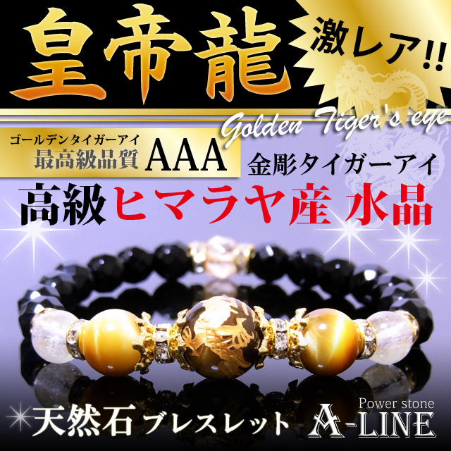 金彫り皇帝龍タイガーアイ&ヒマラヤ産水晶8mmの最強コンビパワーストーンブレスレット!
