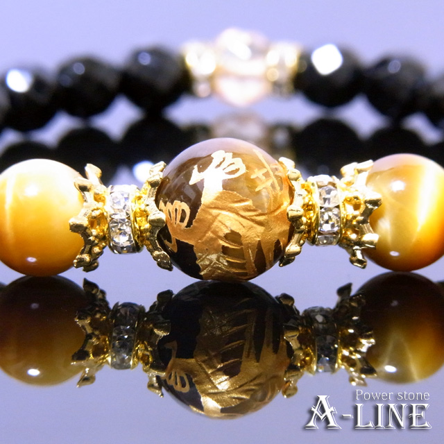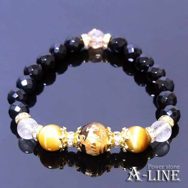 パワーストーン ブレスレット 金運UP 金彫り皇帝龍タイガーアイ12mm&ヒマラヤ産水晶8mm PW-2826