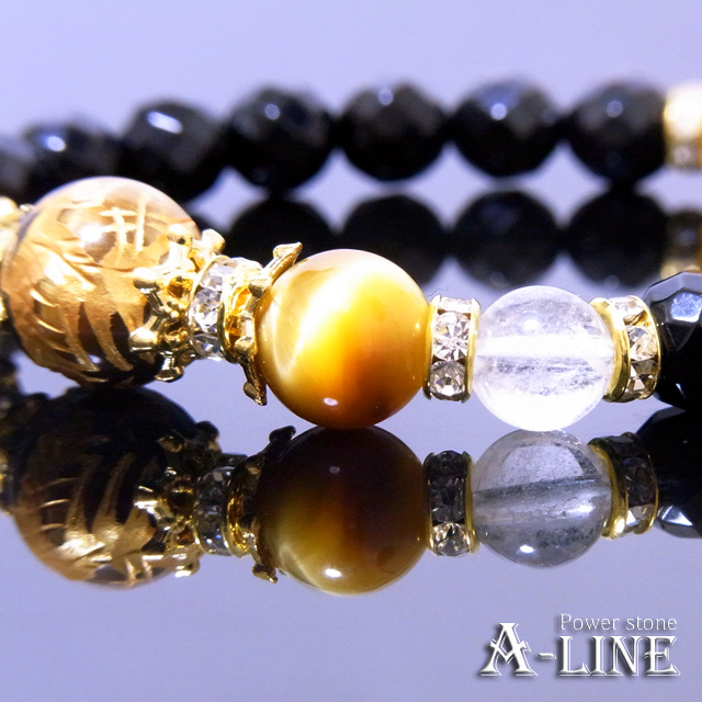 皇帝龍金彫りタイガーアイ12mm・ゴールデンタイガーアイ10mm・ヒマラヤ産水晶8mm・64面カットオニキス&64面カットゴールデンオーラ8mm・合金クリスタルロンデル・国産高級オペロンゴム