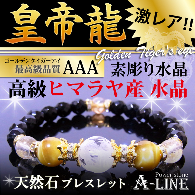 パワーストーン ブレスレット 金運UP 素彫り皇帝龍水晶12mm&ヒマラヤ産水晶8mm PW-2828