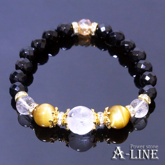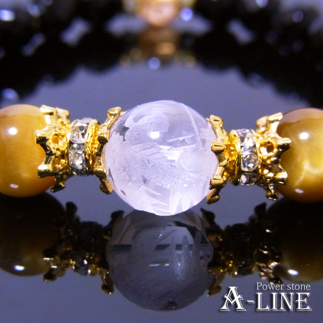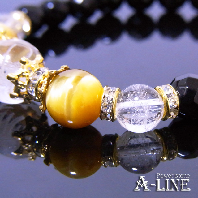 素彫り皇帝龍水晶12mm・ゴールデンタイガーアイ10mm・ヒマラヤ産水晶8mm・64面カットオニキス&64面カットゴールデンオーラ8mm・合金クリスタルロンデル・国産高級オペロンゴム