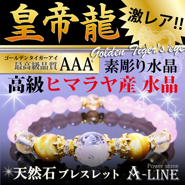 パワーストーン ブレスレット 金運UP 素彫り皇帝龍水晶12mm&ヒマラヤ産水晶8mm PW-2829