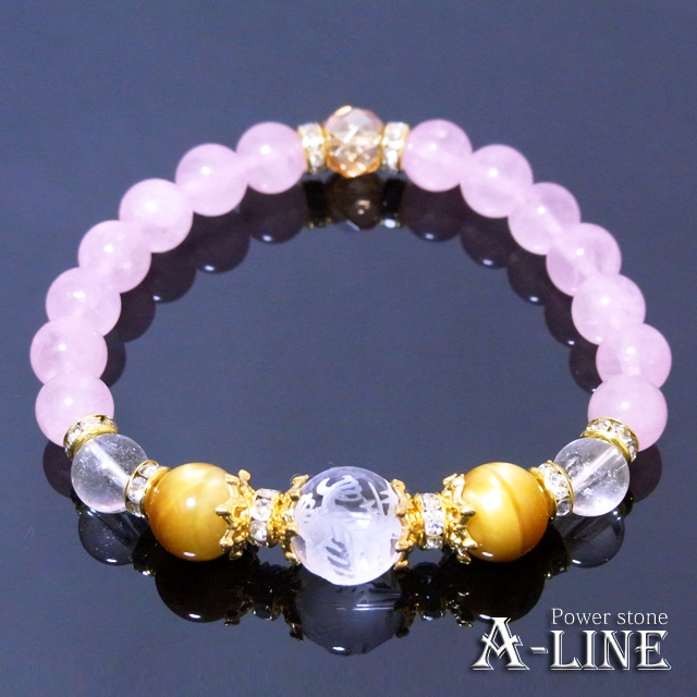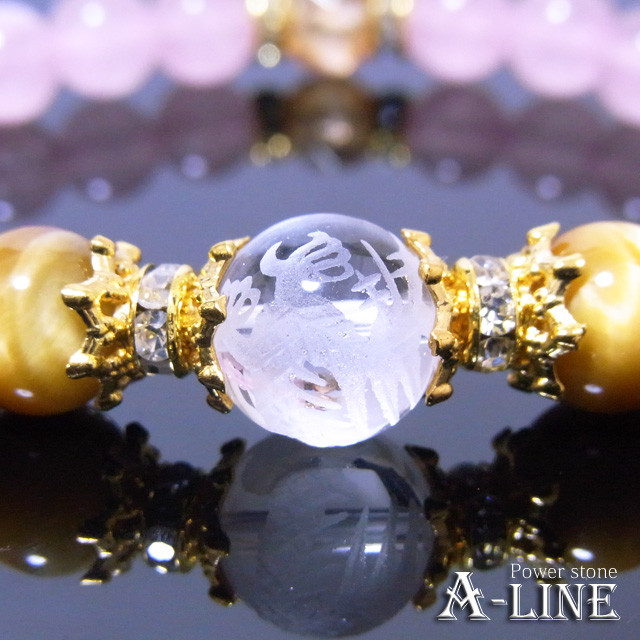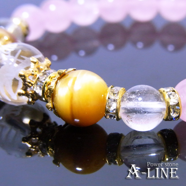 素彫り皇帝龍水晶12mm・ゴールデンタイガーアイ10mm・ヒマラヤ産水晶8mm・ローズクォーツ&64面カットゴールデンオーラ8mm・合金クリスタルロンデル・国産高級オペロンゴム