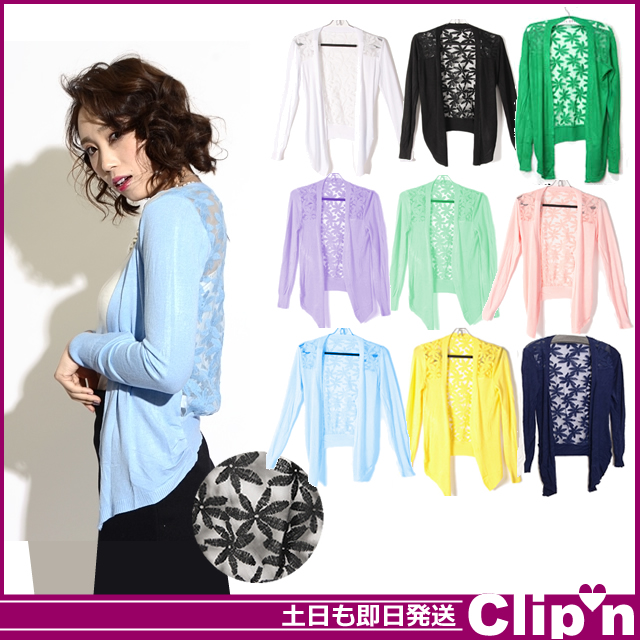 【メール便/送料無料】定番☆人気 半袖 長袖 バック フラワー レース カーディガン ショート丈*トップス[即納即日発送あす着]
