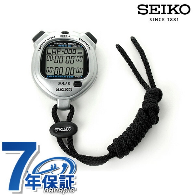 7年保証キャンペーン 正規品 セイコー ストップウォッチ インターバルタイマー ソーラー SVAJ101 SEIKO INTERVAL TIMER SOLAR シルバー ダブルリピートタイマーを搭載した、インターバルトレーニング等に最適なストップウォッチです。定期的な電池交換が不要なソーラー充電タイプ。大容量の300メモリーに対応。ストップウォッチ機能、ラップ・スプリット計側機能に加え、時計機能も搭載しています。