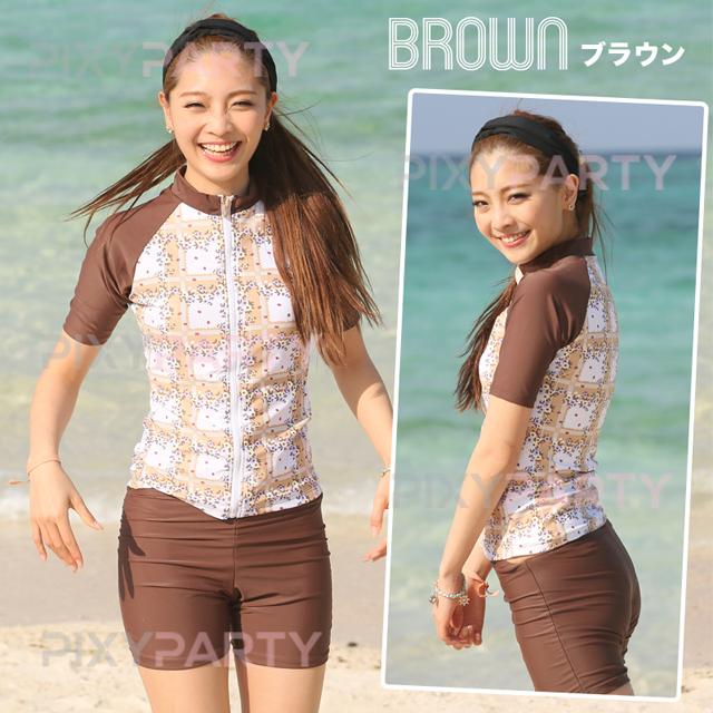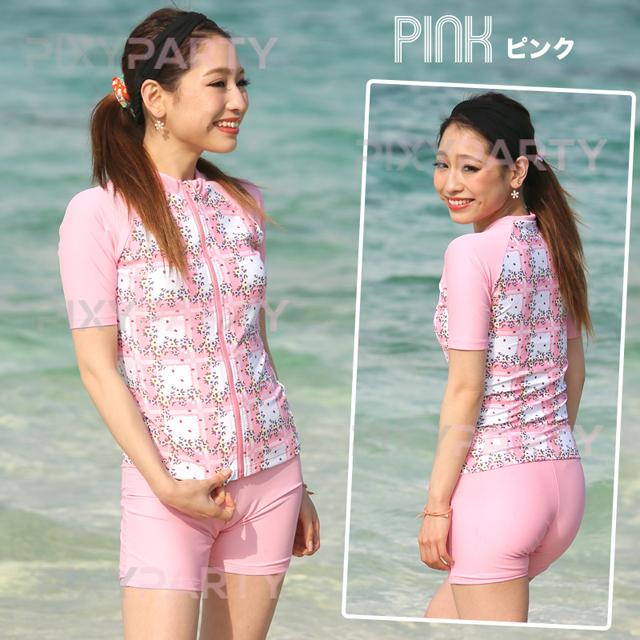 スイムウェア レディース PixyParty 花柄 半袖 フィットネススイムウェア 2点セット (rs-swim-176m) [宅配B]【送料無料】 上下 タンキニ おしゃれ かわいい 体型カバー 水着 パンツ オールインワン スポーツ 体操 運動用水着 S M L 小さいサイズ 大きいサイズ agesugi_sfa