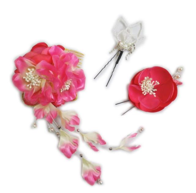 髪飾り 髪かざり 3点セット ピンク可憐花パールビーズラインストーン 振袖 成人式 卒業式 袴 結婚式 着物 浴衣