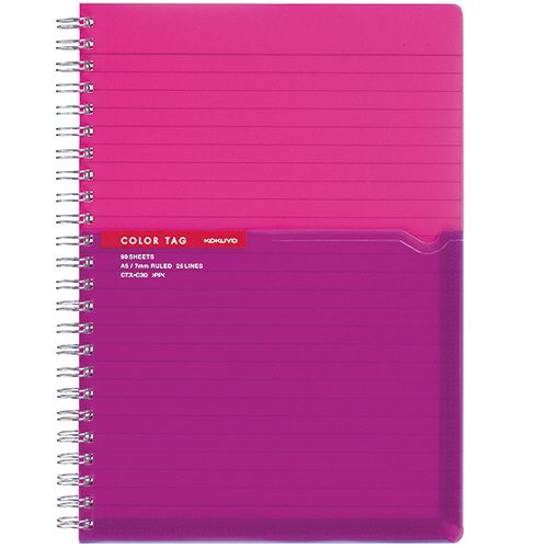 ツインリングノート(カラータグ) Bi?COLOR A5 A罫 90枚 ピンク 1冊