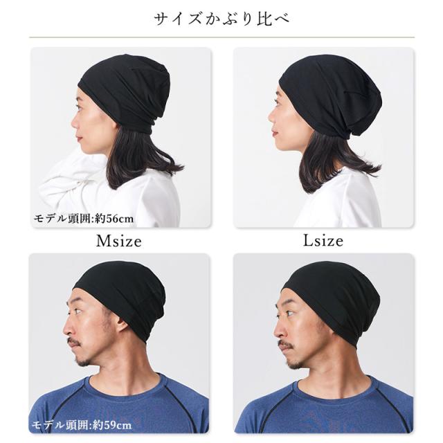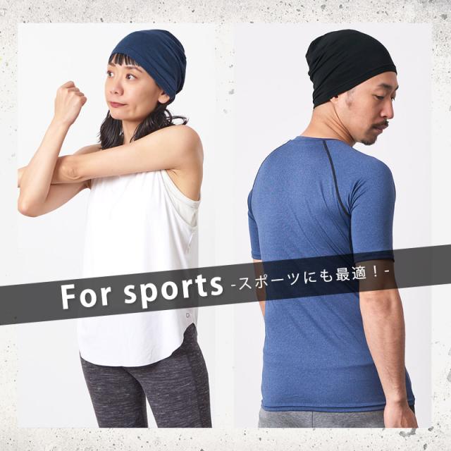 シンプルなデザインで帽子やヘルメットなどのインナー帽子としても、一年を通して快適にかぶれます。