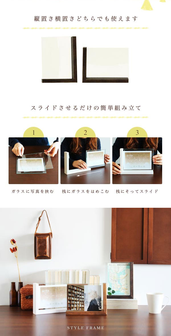フォトフレーム 天然木 木製 日本製 おしゃれ ライトブラウン ダークブラウン ホワイト STYLEフレーム PF1520 arne アーネ ▼