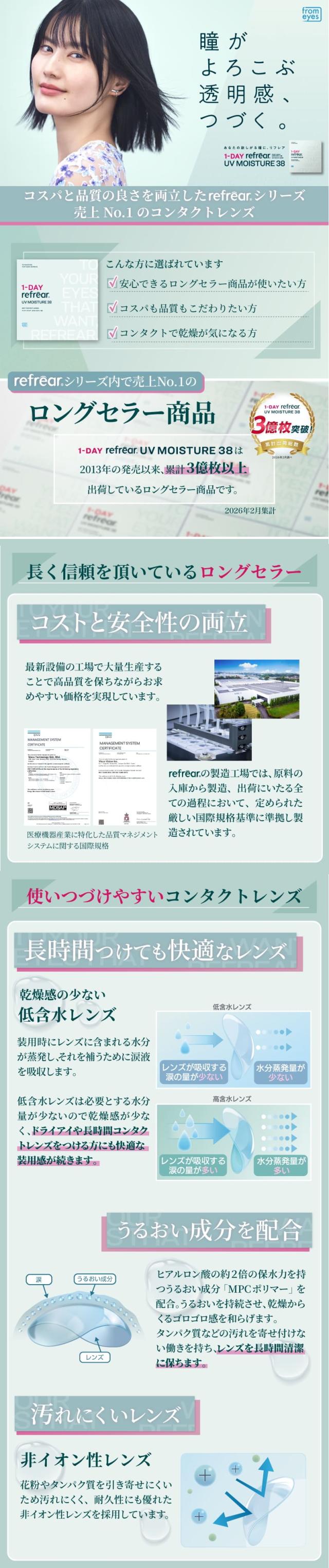 【ポイント5倍】フロムアイズ ワンデーリフレアUVモイスチャー38【30枚パック】2箱セット ポスト便 送料無料 1日使い捨て ワンデー コンタクトレンズ