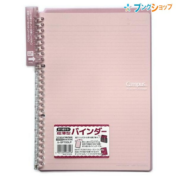 コクヨ キャンパスバインダー スマートリング B5-S 26穴 最大収容枚数25枚 中紙10枚付き ライトピンク ル-SP700LP スリムでスマートな使い心地 折り返せる薄型バインダー
