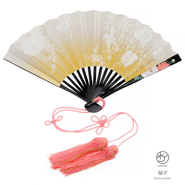 扇子 黒 金銀 グラデーション 牡丹 ぼたん 花 フォーマル 日本製 結婚式 披露宴 成人式 卒業式 慶事用 婚礼用 振袖向き 末広 せんす おうぎ おおぎ【暑さ対策_b】