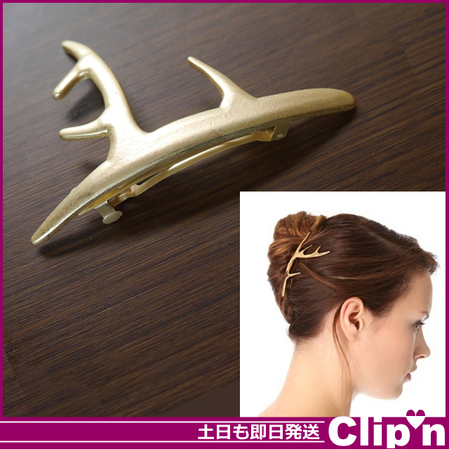 【メール便/送料無料マットゴールド鹿の角バレッタ/ディア/アントラー/antler*ヘアアクセサリー□[即納即日発送あす着]