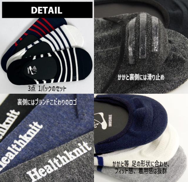 Health Knit(ヘルスニット) メンズ ソックス インステップ 3Pセット 靴下 メンズ 靴下3足セット 厚手/中肉 スラブ/無地/ボーダー