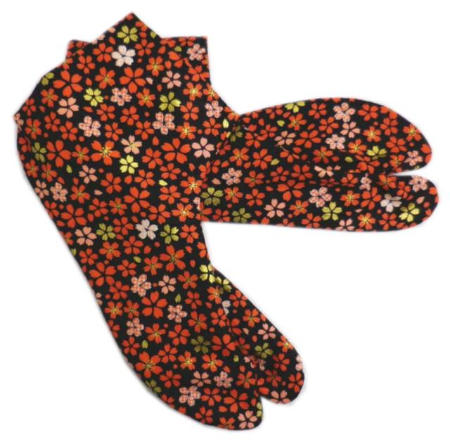 足袋 総柄 4枚こはぜ 黒色地桜桜 24.5cm 25cm 日本製 振袖 成人式 卒業式 袴 着物 女性用 レディース きもの はかま 桜柄 さくら