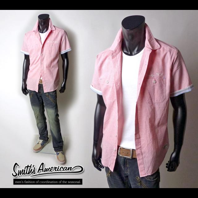 メンズ オーバーシャツ 半袖 SMITHS AMERICAN スミスアメリカン 麻混 無地 ロゴ刺繍