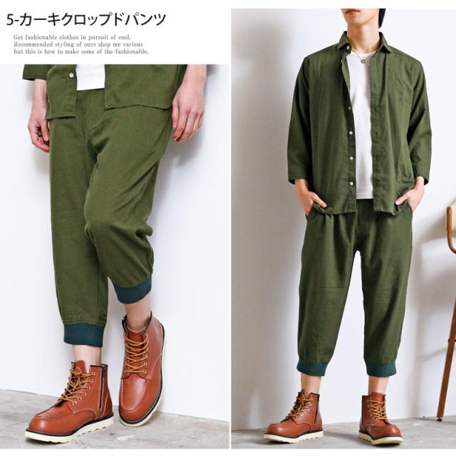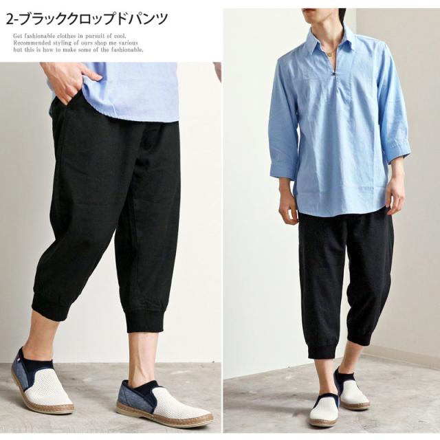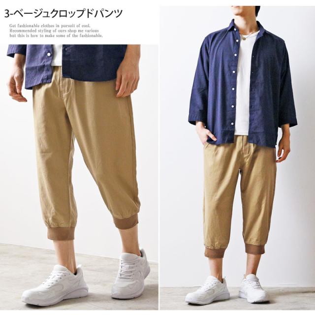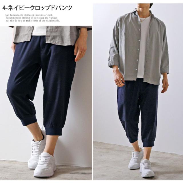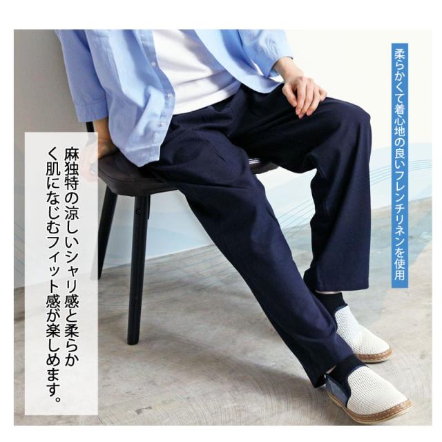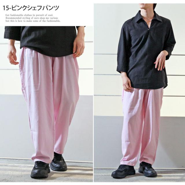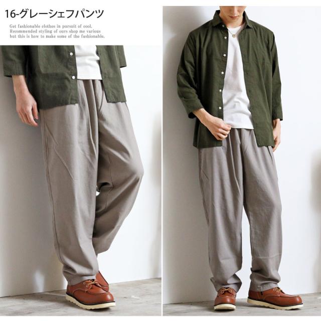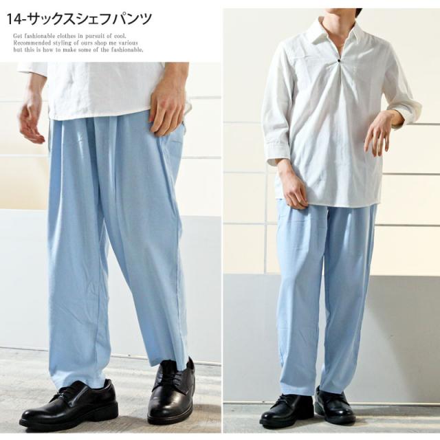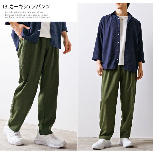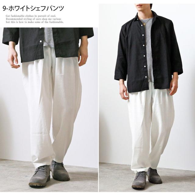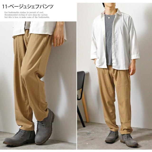 新作 春 夏 シェフパンツ メンズ クロップドパンツ 無地 リネン素材 選べる股下2タイプ 爽やか 涼しい 送料無料 ゆうパケ