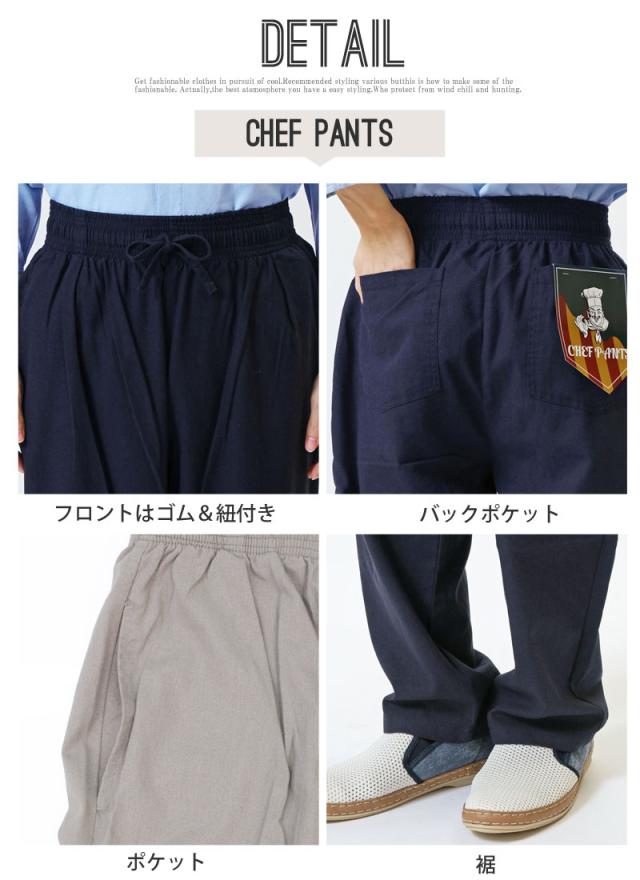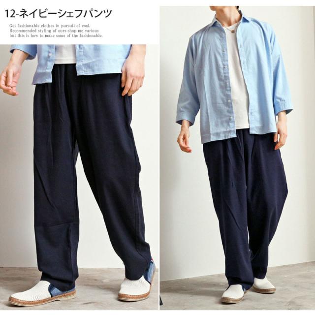 部屋着から外出着まで幅広く使えるシェフパンツは