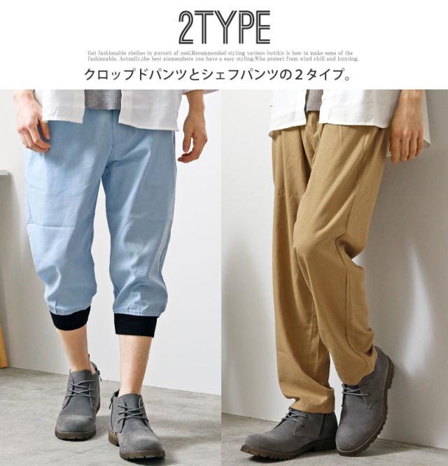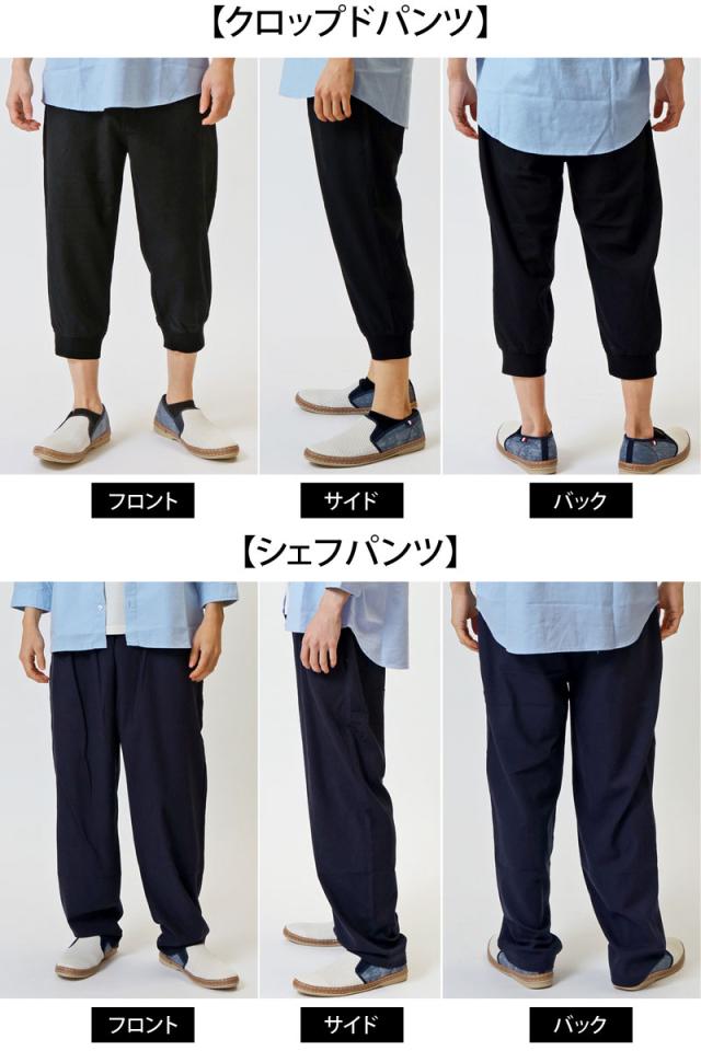 股下は選べるクロップドパンツとシェフパンツの2タイプ!