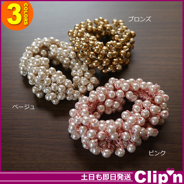 【メール便/送料無料】小粒ビーズがたっぷり♪ボリュームヘアゴム/ピンク・ベージュ・ブロンズ*ヘアアクセサリー[即納即日発送あす着]