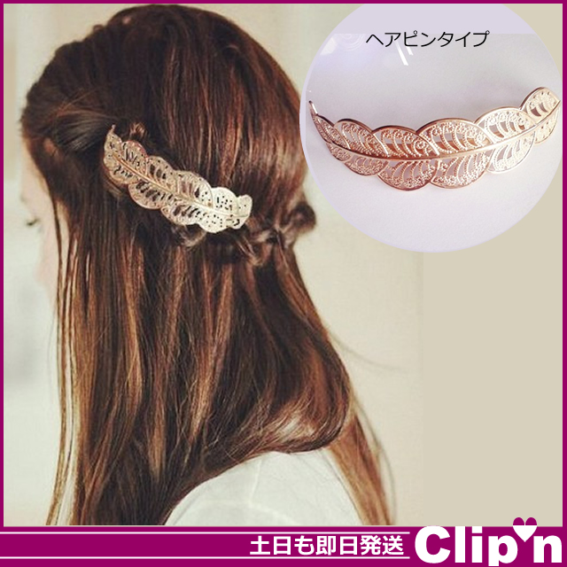 【メール便/送料無料】ビッグサイズ 透かし 模様 フェザー メタルヘアピン*ヘアアクセサリー 780円□[即納即日発送あす着]