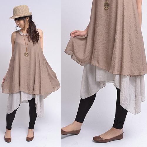 ★配色レイヤード風★裾イレギュラーカットノースリ ワンピース9372-0323-ss
