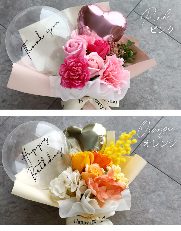 | 備考 | 当店では在庫を複数サイトで共有している為、同時にご注文があった場合売り切れとなる可能性がございます。 【発送不可地域】 「沖縄」「離島」「海外」 【バルーンについて】 ・ソープフラワーは、石鹸素材から作られた観賞用のお花です。 石鹸としてのご使用は出来ません。 ・バルーンには棒がついておりますので小さいお子様にはご注意下さい。 ・モニターによって実物と多少色が異なる場合がございます。 |