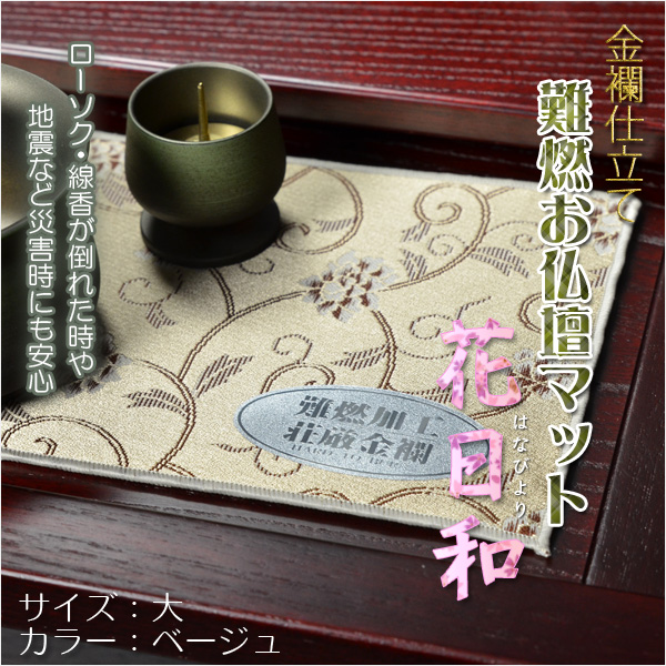 国産仏具【金襴仕立 難燃お仏壇マット:花日和(はなびより)サイズ大 ベージュ】仏壇用仏具 ネコポス送料無料