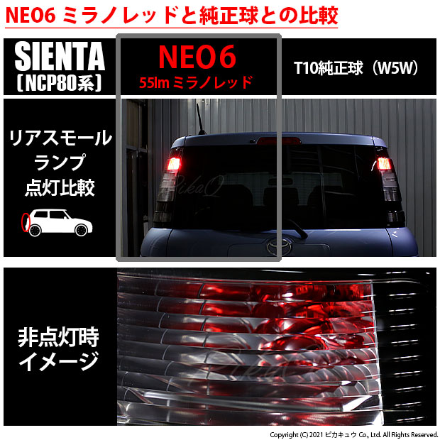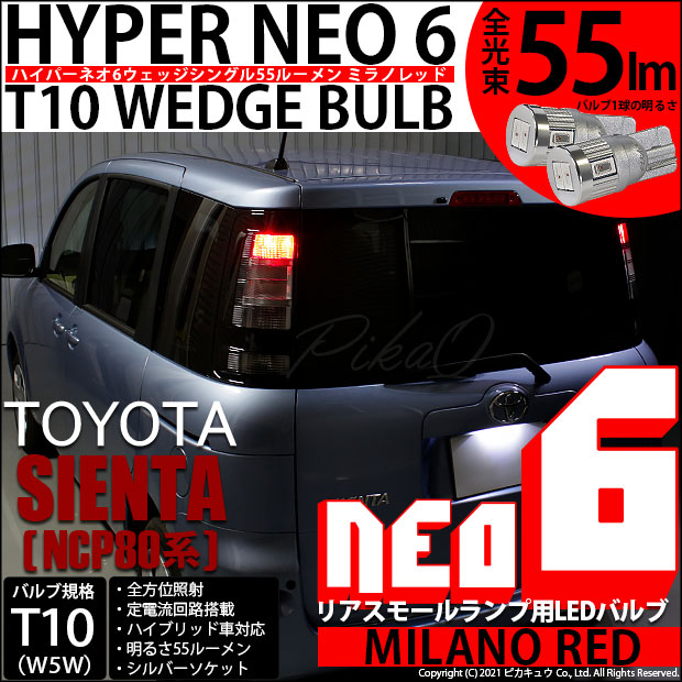 トヨタ シエンタ (NCP80系) 対応 LED リアスモールランプ T10 HYPER NEO 6 55lm ミラノレッド 2個 2-D-6