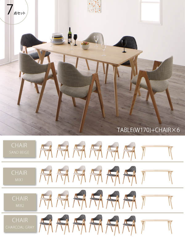 セット内容:テーブル(W170)×1、チェア×6