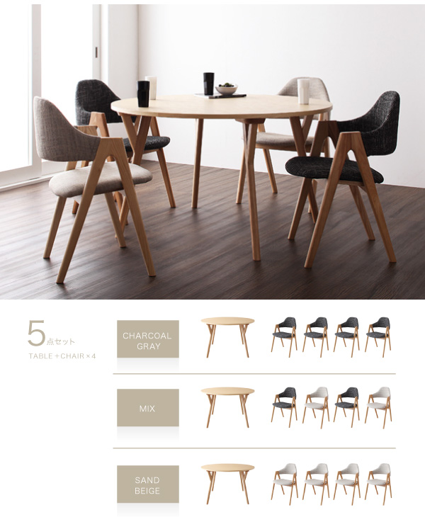 北欧モダンデザインダイニング〔Rund〕ルント 5点セット サンドベージュ 【北海道・沖縄・離島配送不可】