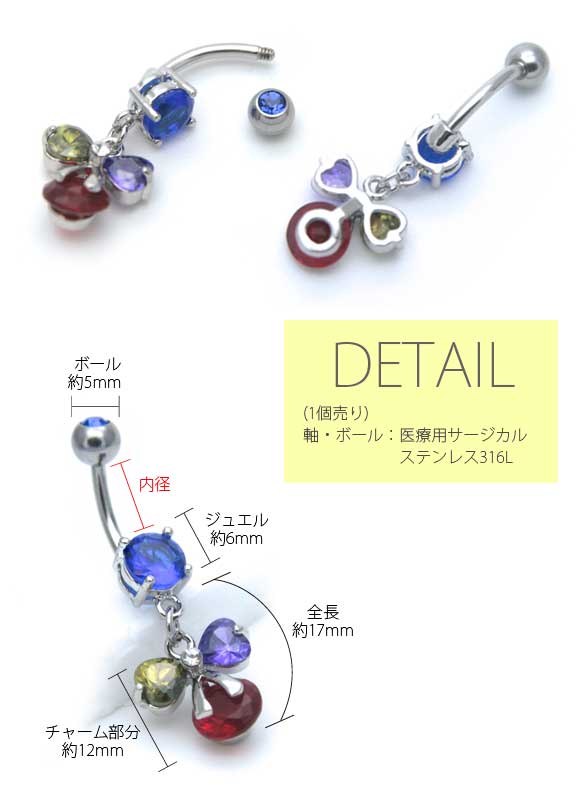 ミックスカラーで個性を出せる、おすすめへそピアスです(^^)