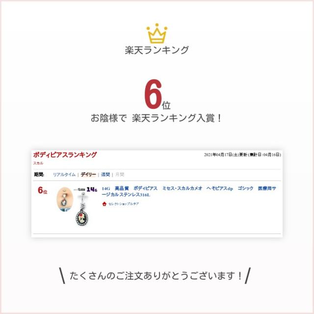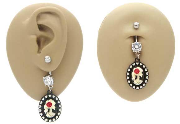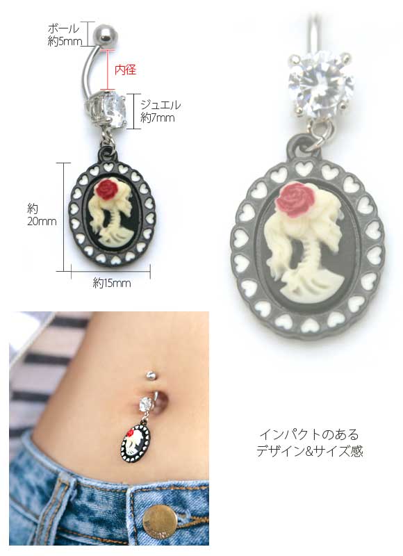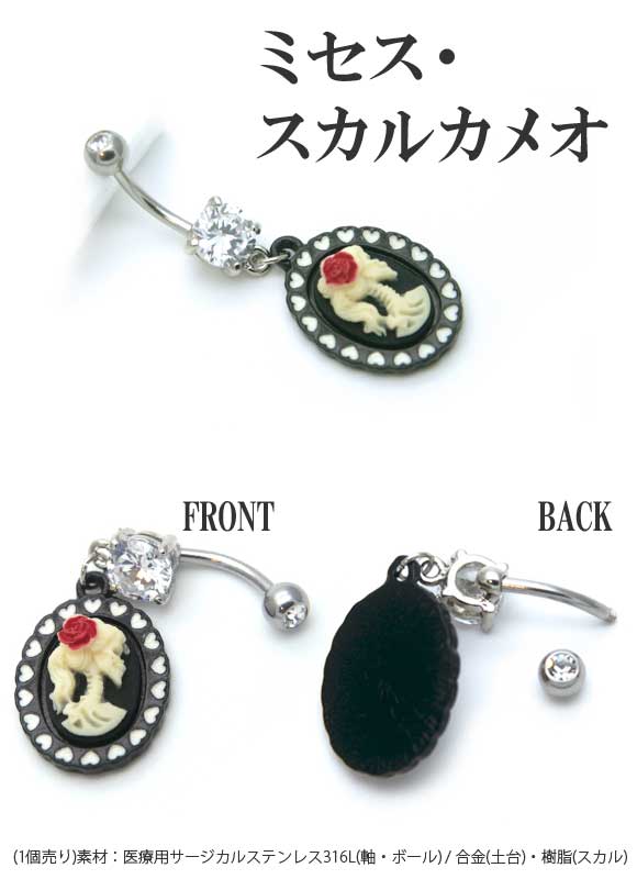 本日P2倍 14G ピアス ボディピアス ミセス・スカルカメオ へそピアス メンズ かっこいい ゴスロリ 金属アレルギー対応 316L 高品質 ステンレス