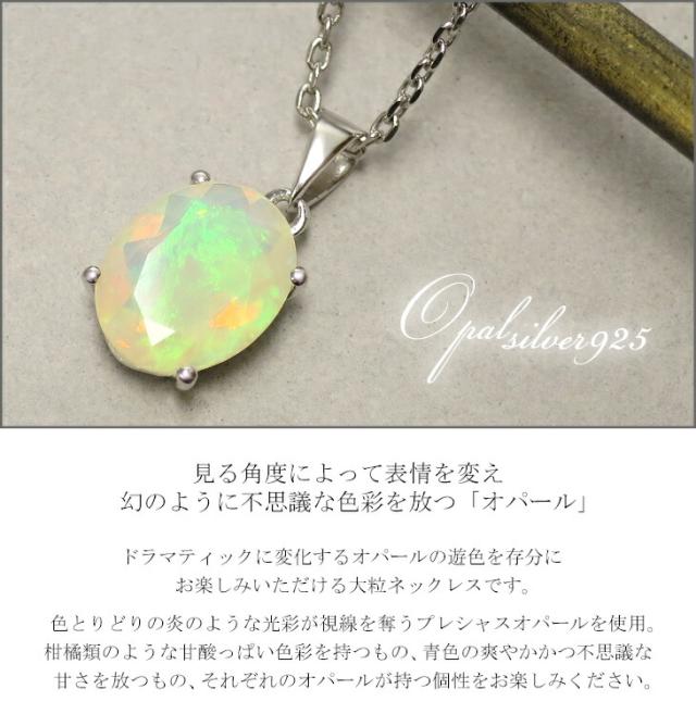 天然 プレシャスオパール オーバル ネックレス シルバー925 シルバーネックレス オーバルカット 楕円 丸 天然オパール 一粒ネックレス