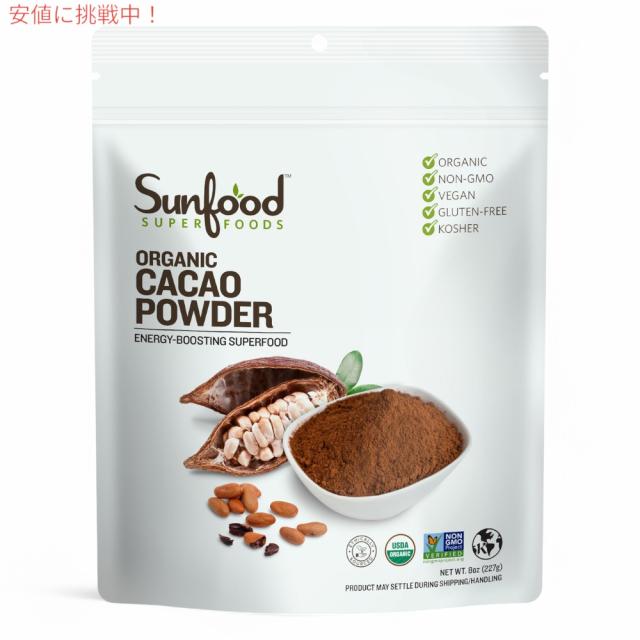 【お取り寄せ】Sunfood Cacao Powder Organic 8oz (227 g) サンフード カカオパウダー オーガニック【安心のアメリカ正規品】