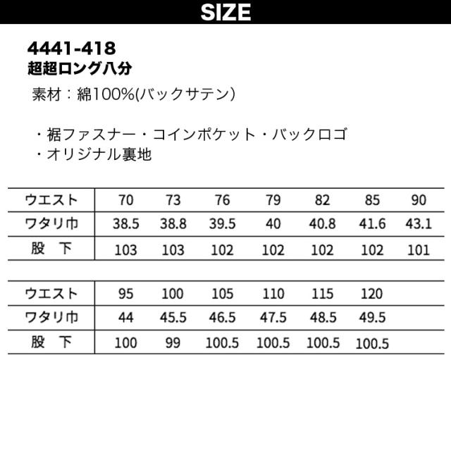 寅壱 4441-418 超超ロング八分 4441シリーズ バックサテン 作業着
