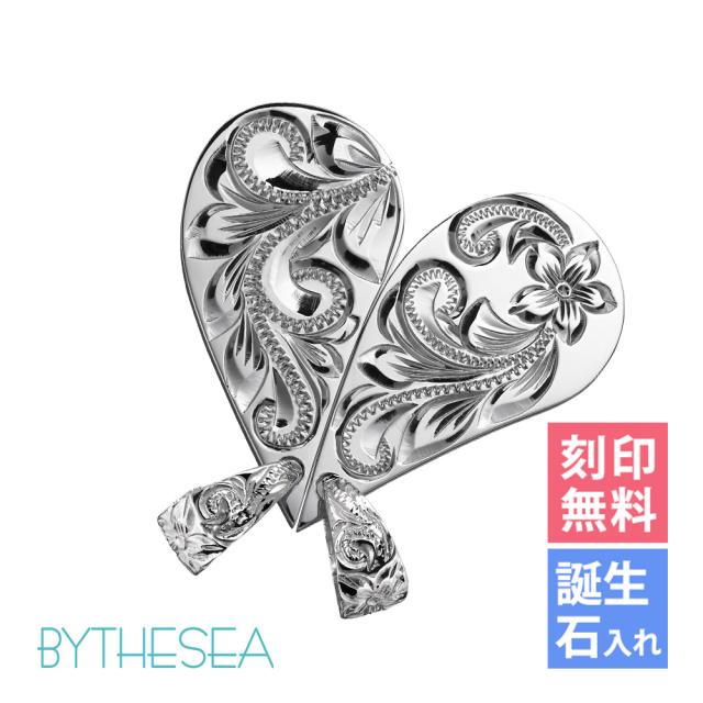 ハワイアンジュエリー シルバー ペアペンダントトップ 2個セット 刻印 無料 誕生石入れ可 2つ合わせるとハート ペア ハート シルバー925 ネックレス チェーン別売 ペンダントヘッド カップル 夫婦 プレゼント 母の日 【品番:SP313LRP】