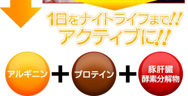 エネルギッシュなパフォーマンスを応援するアミノ酸の1種アルギニン配合!更にプロテインとレバーエキスも配合し、スポーティースタイルやナイトライフも応援します!