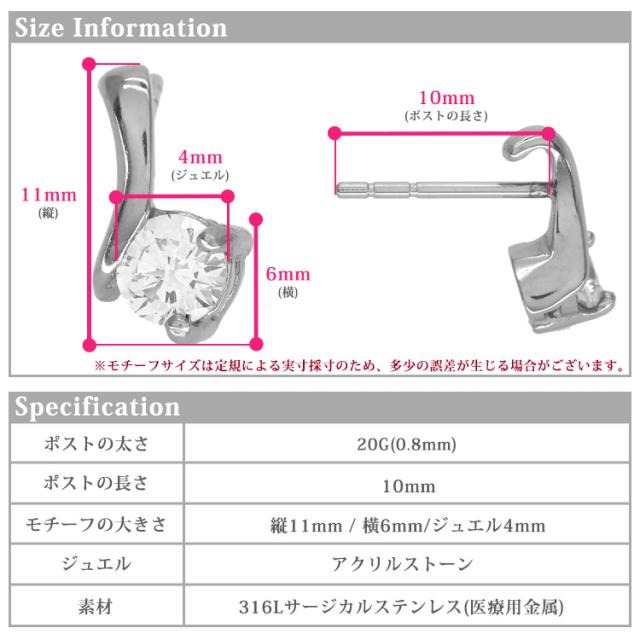シンプルな一粒ジュエルにあわせて女性らしい大人らしさを表現した、清楚でとってもかわいらしいデザイン。 耳元から顔周りを華やかに彩ります。 普段使いからフォーマルなシーンまで、どんなコーディネートにもあわせやすいですよ! 素材には、金属アレルギーの方にも安心なサージカルステンレスを使用。 使い勝手の良さとデザインが魅力的なステンレスピアスを是非お試しください。 シルバーやホワイトゴールド、プラチナで金属アレルギーが出てしまう方にもオススメです。