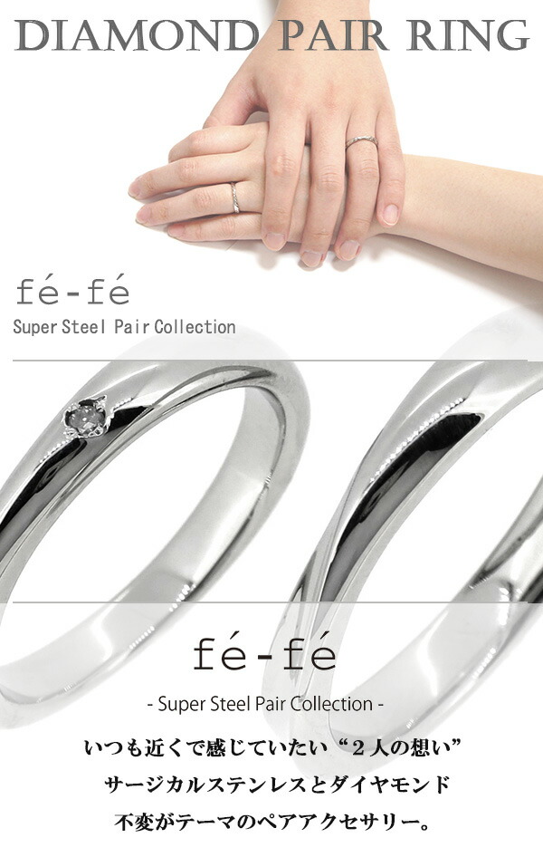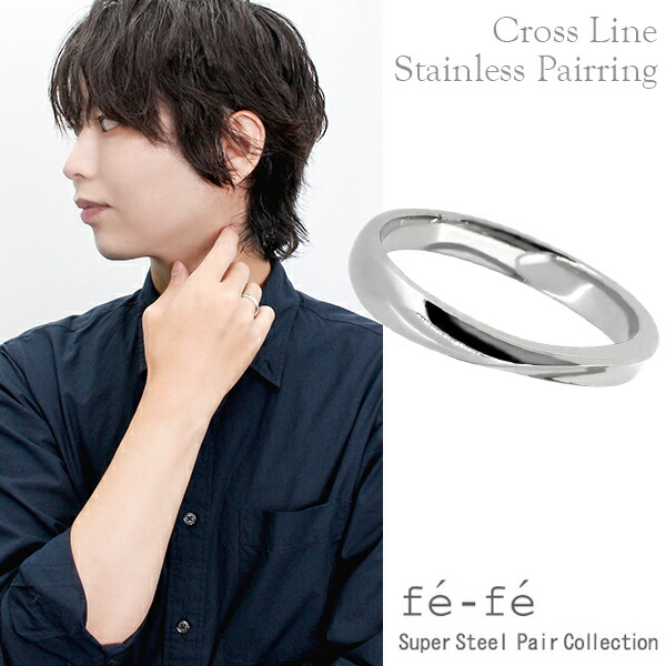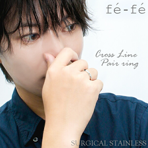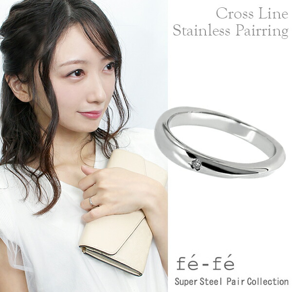 【fe-fe フェフェ】ダイヤモンド クロスライン ステンレス ペアリング 7〜17号 メンズ レディース 指輪 金属アレルギー 送料無料 ペアリング 2本セット ステンレス ブランド