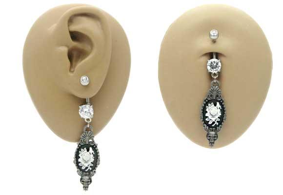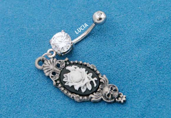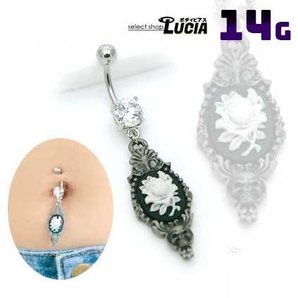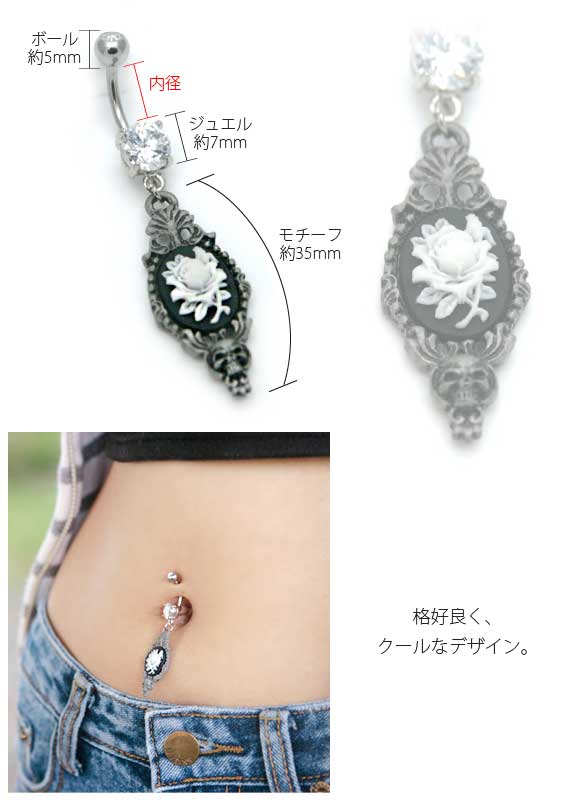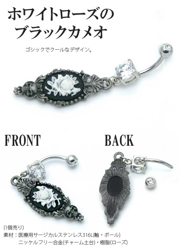 本日P2倍 14G ピアス ボディピアス ゴシックアンティーク調 ローズスカルカメオ へそピアス ゴスロリ 金属アレルギー対応 316L 高品質 ステンレス