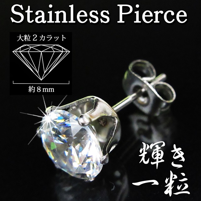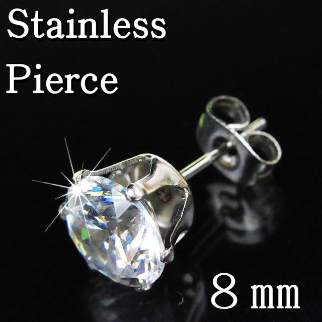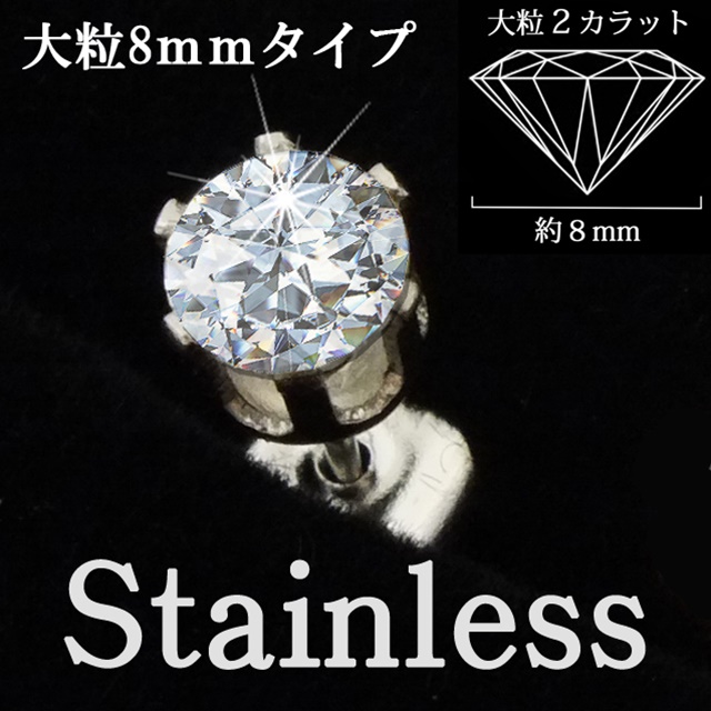 キュービックジルコニアダイヤモンド ピアス1粒 クリアブルーカラー ジルコニアピアス人気大粒8mm高品質1粒【片耳:1個】 CZダイヤモンド ノンアレルギーサージカルステンレス素材