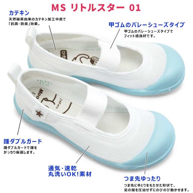 ムーンスター MSリトルスター01 子供スニーカー バレーシューズ 甲バンド 上履き 抗菌 防臭 速乾 MOONSTAR