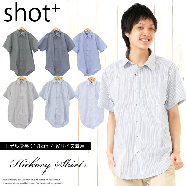 コロナ 支援 応援 値下げ シャツ ヒッコリーシャツ メンズ 半袖 トップス ストライプ 夏シャツ 春シャツ【メ】『F』