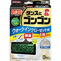 | 商品名 | タンスにゴンゴン 衣類の防虫剤 ウォークインクローゼット用 無臭 防カビ・ダニよけ 3コ入 |