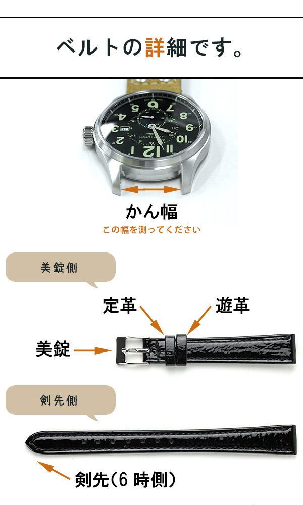 | サイズ | かん幅:約18mm 剣先側:約130mm 美錠側:80mm ベルト幅:約18mm かん幅:約20mm 剣先側:約130mm 美錠側:80mm ベルト幅:約20mm ※ベルト幅は美錠幅-かん幅です |