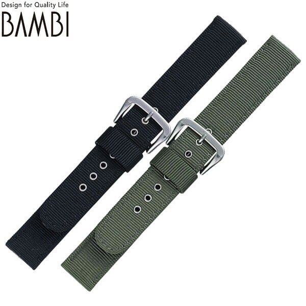 交換用ベルト 腕時計 ナイロン カジュアル 選べるモデル BGB311 CASUAL 替えベルト ナイロンベルト 撥水性に優れています。独自の発想力、開発力、そして、日本の風土と文化が生んだ高度な技術を持つBAMBIのベルトです。多彩な素材を使用したカジュアルライン。ラフなファッションにもフィットする、遊び心満載のデザインが揃っています。※サイズやカラー間違いにご注意くださいませ。 公式品番: BGB311A BGB311O カラー: ブラック アーミーグリーン かん幅: 18mm 20mm