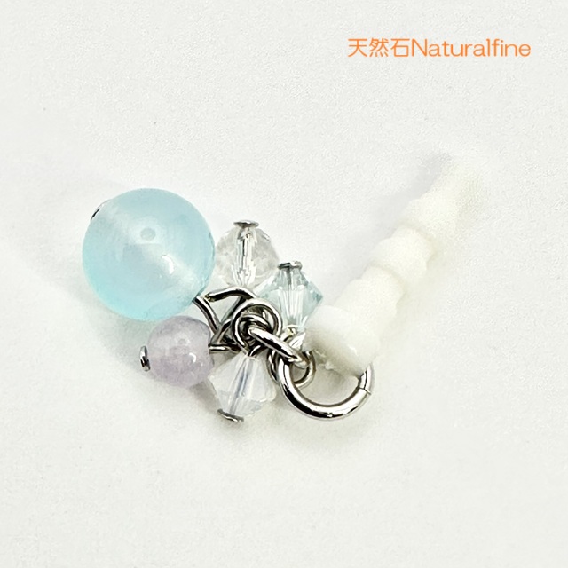 イヤホンジャック アンドロイド iPhone シーブルーカルセドニー 天然石 ストラップ パワーストーン 縁を繋ぐ